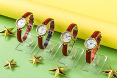 ラインナップされたのは、MARGINAL#4の楽曲「100万回の愛革命(REVOLUTION)!」のメンバー衣装をイメージした腕時計。桐原アトム、藍羽ルイ、野村エル、野村アールの4種類が用意され、12時を示すインデックスとベルトの裏地は各メンバーをイメージしたカラーで彩られた。また文字盤にも、それぞれの衣装のモチーフが装飾としてあしらわれている。価格は各1万3824円。予約は本日5月9日から28日まで受け付け、商品は10月上旬頃に届けられる。
