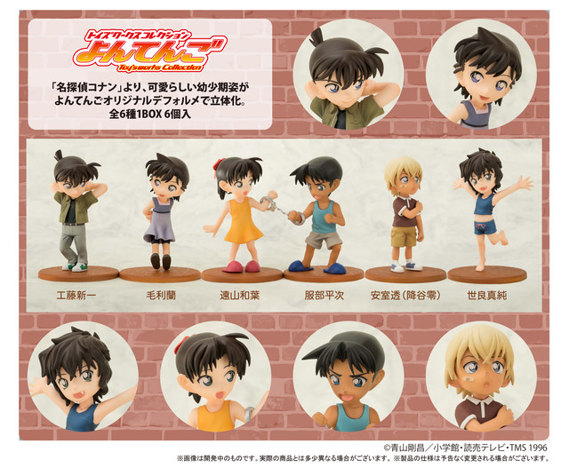 作中に登場する6人のキャラクターの幼少期を、4.5頭身で立体化した同シリーズ。工藤新一、 毛利蘭、服部平次、遠山和葉、世良真純、安室透(降谷零)の6種類がラインナップされ、新一と蘭、平次と和葉は並べて飾ると向かい合う姿が楽しめる。