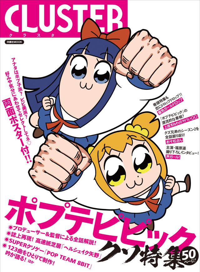 大川ぶくぶ原作によるテレビアニメ「ポプテピピック」を50ページにわたって特集したムック「CLUSTER ポプテピピック」(洋泉社)が、明日4月28日に発売される。