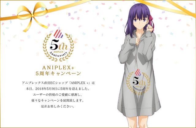 アニプレックスの公式オンラインショップ・ANIPLEX+が、本日5月9日にオープン5周年を迎えた。これを記念し、5つのキャンペーンが展開される。