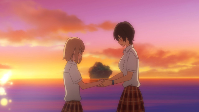 「あさがおと加瀬さん。」OVAの場面カット到着、夕暮れの中JK2人が手を取りあう