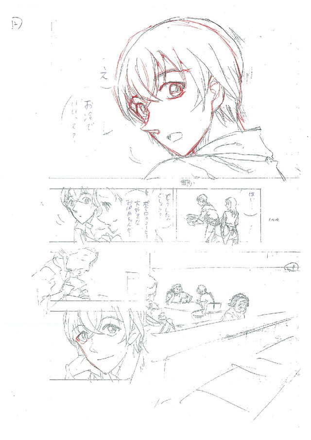 青山剛昌による赤字入りの「ゼロの日常(ティータイム)」下絵。
