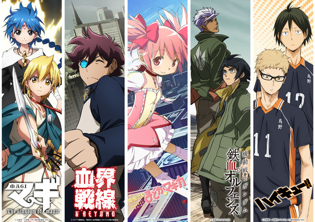 (c)Magica Quartet/Aniplex・Madoka Partners・MBS (c)大高忍/小学館・マギⅡ製作委員会・MBS (c)古舘春一/集英社・「ハイキュー!!」製作委員会・MBS (c)創通・サンライズ・MBS (c)2017 内藤泰弘/集英社・血界戦線 & BEYOND製作委員会