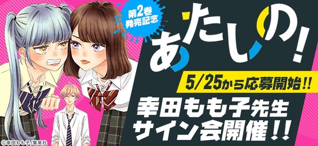 幸田もも子「あたしの!」の2巻が本日5月25日に発売されたことを記念し、オンライン書店・bookfanの各電子書籍ストアとeBookJapanにて「eBookサイン会」と題したキャンペーンが行われている。