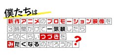 「僕たちは新作アニメのプロモーション映像を3時間かけて一気観したらどのくらいつづきをみたくなるのだろうか?」ロゴ