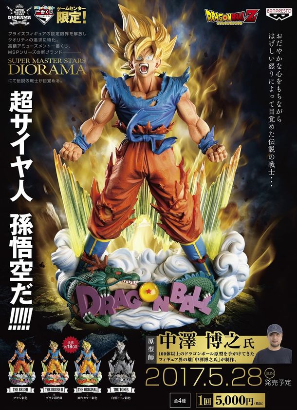 この一番くじでは全高約18cmの「超サイヤ人孫悟空」フィギュアが色違いで登場。鳥山の「DRAGON BALL 超画集」を参考に原作カラーを忠実に再現した「THE ORIGINAL」、服のしわや筋肉の隆起などの立体感を意識して彩色された「THE BRUSH」、画集のイメージにオーラを纏ったような雰囲気を加味した「THE BRUSH II」、白黒トーン彩色の「THE TONES」という全4等級4種がラインナップされている。原型製作は中澤博之が手がけた。