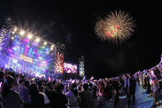 その後、ステージにはSOARAのメンバーが集結。「With U」での沢城の替え唄に対してほかのメンバーからツッコミが入ったり、豊永が自身のペットボトルに虫が止まっていたという野外ならではのアクシデントを振り返ったりと賑やかなMCが展開されたあと、「ツキプロ大運動会」が描かれた「プロアニ」第6話のエンディング曲「スタートライン~Boys, Be Mighty~」でさらに会場を盛り上げていく。一転して「三日月ファンタジー」ではクールなSOARAの姿を観客に見せつけた。