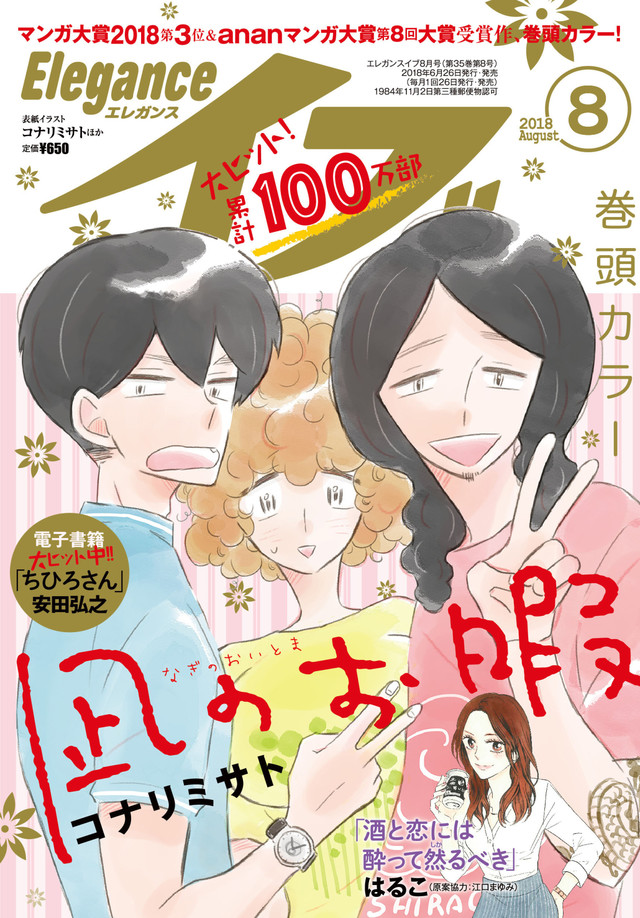 コナリミサト「凪のお暇」が、本日6月26日発売のエレガンスイブ8月号(秋田書店)の表紙と巻頭カラーに登場している。