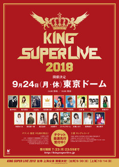 キングレコードによるフェス「KING SUPER LIVE 2018」が9月24日に東京・東京ドーム、9月30日に台湾・国立体育大学体育館、10月14日に上海で開催される。