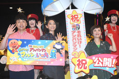 6月30日に全国公開される本作は、劇場版「それいけ!アンパンマン」シリーズの30作目。アンパンマンの声を30年間担当してきた戸田は「おかげさまで30周年を迎えることができて感慨もひとしおです」としみじみ述べる。好奇心旺盛でちょっと不思議な子・クルンを演じた杏は、「映画館に来るのが初めての子は?」と客席に質問。会場の子供たちは「はーい!」と大きな返事をし、杏は「みんなのデビューと30周年の場に立ち会えてとってもうれしいです」と笑顔を浮かべる。ばいきんまんが作ったメカ・ゴロンゴロを演じた児嶋は「大島さん!」という呼びかけに「児嶋だよ!」とお約束のツッコミをし、「アンジャッシュも25周年なので、四捨五入すると30周年ということで一緒に祝っていただけたらと思います」と挨拶した。