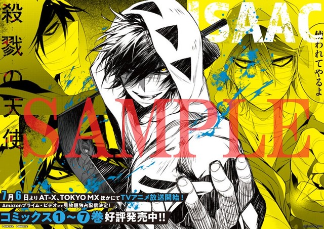 「殺戮の天使」はビルの地下で目覚めた記憶喪失の少女レイチェルと、ビルをさまよう殺人鬼ザックの出会いから始まる物語。原作は、ゲーム配信サイトの電ファミニコゲームマガジンで公開されているホラーアドベンチャーゲームで、名束によるコミカライズ版は月刊コミックジーン(KADOKAWA)で連載されている。7月6日からはAT-X、TOKYO MXほかにてテレビアニメの放送が開始。