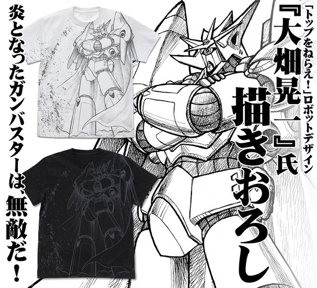 「ガンバスターオールプリント Tシャツ」は、同作のロボットデザイン担当・大畑晃一が描き下ろしたガンバスターをプリントする。白と黒の2色展開で、価格は3132円。
