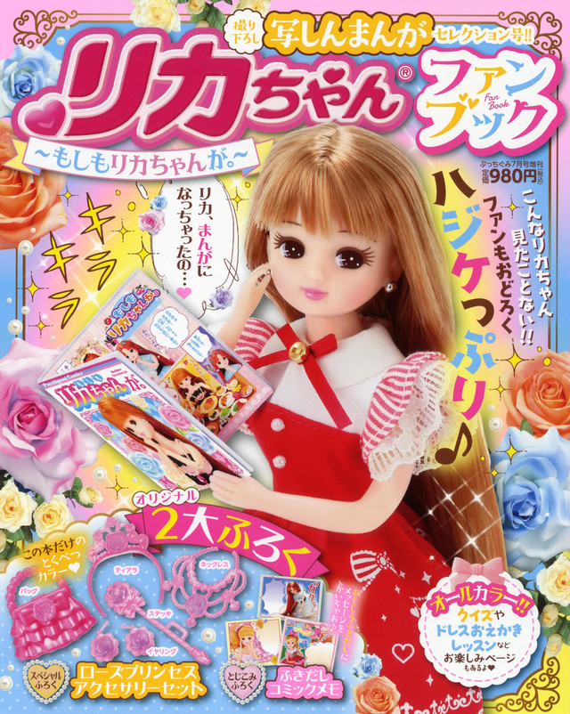 また付録として限定カラーリングの「ローズプリンセスアクセサリーセット」や、「ふきだしコミックメモ」が付属。付録のアクセサリーでコーディネートをキメるリカちゃんの姿を収めたグラビアページや、「リカちゃんのドレスができるまで」を追った特集ページも展開された。巻末には「もしもリカちゃんが。」にまつわるクイズが登場する「全国とういつテスト」も収録されている。