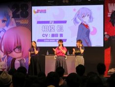 「RELEASE THE SPYCE」は、正義の私設情報機関「ツキカゲ」に所属する女子高生・源モモがスパイとして街の平和を守るべく活躍する作品。「ゆるゆり」などで知られるなもりがキャラクター原案を務める。イベントには源モモ役の安齋由香里、モモと同じくツキカゲで活動する相模楓役の藤田茜、石川五恵役ののぐちゆりが登場し、10月から放送が始まる本作をアピールした。