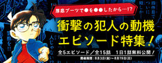 そんな動機で!?「コナン」犯人の衝撃的な動機集めた特集、1日1話無料公開 2018年8月3日2018年8月3日 editor 「衝撃の犯人の動機エピソード特集」バナー青山剛昌「名探偵コナン」の公式アプリにて、本日8月3日から19日まで「衝撃の犯人の動機エピソード特集」と題した特集が展開されている。 同特集では、数多くの事件が発生している「名探偵コナン」の作中の中から、思わず「そんな動機で!?」と驚いてしまうようなエピソードをセレクト。アプリ内にて、5エピソード全15話を1日1話無料で読むことができる。 (c)青山剛昌/小学館 (c)CYBIRD 関連記事劇場版「鬼滅の刃」入場者特典第11弾に吾峠呼世晴描き下ろしメッセージボード「極主夫道」いい夫婦の日キャンペーンで11巻分無料公開、夫婦茶碗も当たる「楽園追放」続編キャストに佐倉綾音、早見沙織、青山吉能、天城サリー 来年11月公開生き残れるのは1人だけ、殺し屋のルームシェアサスペンス「あずさ荘の食卓」1巻「もやしもん+」1巻、春祭から新たな1年のスタート 「新装版 もやしもん」も同時発売トラウマ抱えた少女の中にいる、彼女を守るもう1人の人格「小春とふたりのナイト」1巻 Tweet 関連コミック 名探偵コナン 絶海の探偵 名探偵コナン ルパン三世 vs 名探偵コナン THE MOVIE 名探偵コナン 異次元の狙撃手 名探偵コナン 天国へのカウントダウン 名探偵コナン 迷宮の十字路 名探偵コナン 特別編 名探偵コナン ロマンチックセレクション 名探偵コナン 犯人の犯沢さん 名探偵コナン 純黒の悪夢 名探偵コナン から紅の恋歌 名探偵コナン 天空の難破船 名探偵コナン 警察学校編 Wild Police Story 名探偵コナン歴史まんが 名探偵コナン 業火の向日葵 名探偵コナン ハロウィンの花嫁 名探偵コナン 黒鉄の魚影 名探偵コナン 銀翼の奇術師 名探偵コナン 黒鉄の魚影 名探偵コナン 100万ドルの五稜星 名探偵コナン 100万ドルの五稜星