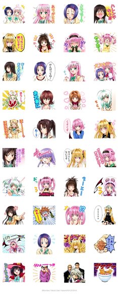 スタンプにはリト、ララ、春菜、唯、ヤミ、モモ、ナナ、セリーヌ、ルンといったキャラクターたちのイラストを使用。「ありがとう」と微笑むララや、「ハレンチなっ!!!」と赤面する唯、「えっちぃのは嫌いです!!」とおなじみのセリフを放つヤミのイラストなどがスタンプ化されている。購入には240円または100コインが必要。
