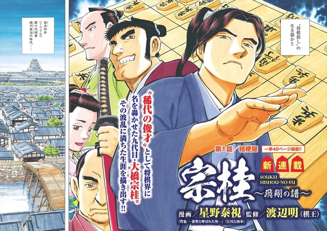 同作は江戸時代を舞台に、代々“将軍家将棋指南役”を務める一族の九代目・大橋宗桂の生涯を描く将棋マンガ。第1話では自宅を将棋会所にし、賭け将棋で荒稼ぎする男・桔梗屋が登場する。ある茶屋で桔梗屋の噂を聞いた、どこかのんびりとした雰囲気の青年は、ひょんなことから桔梗屋と対局することになるが……。監修は渡辺明棋王が務めている。
