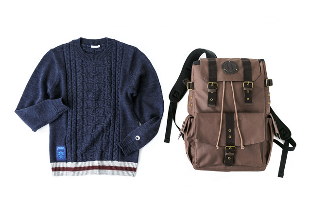 それぞれ大洗女子学園、黒森峰女学園、アンツィオ高校の3モデルを用意。各戦車の色やフォルムをイメージしたリュックは、タグやチャームでディテールをプラスし、ニットは各校のパンツァージャケットの配色をベースに、履帯跡をモチーフにしたリブがデザインされた。