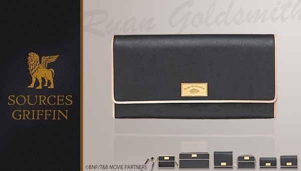 「TIGER & BUNNY」のオリジナルファッションブランド「SOURCES GRIFFIN(ソーシズ・グリフィン)」の新作アイテムとして登場したのは、劇中でライアンが着用している私服をイメージした長財布、二つ折り財布、パスケース、キーケースなど7アイテム。いずれもブラックベースの本革にゴールドのパイピングが映えるデザインで、正面にはライアンマークのゴールドプレートが配置された。また革の表面にはモノグラム風のデザインをエンボス加工で表現。さらに中生地も、表面のモノグラムと同じデザインでカラフルな色合いに仕上げられた。