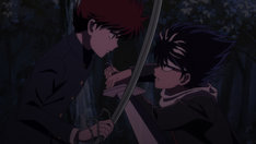 アニメ「幽☆遊☆白書」新作エピソードの場面カット、にらみ合う蔵馬と飛影