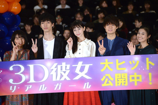 那波マオ原作による実写映画「3D彼女 リアルガール」の公開記念舞台挨拶が、本日9月15日に東京・新宿ピカデリーで行われた。