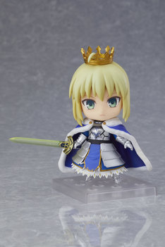 2016年7月に発売された「ねんどろいど セイバー/アルトリア・ペンドラゴン」の復刻版で、一部仕様の異なるこのアイテム。表情パーツには凛々しい「通常顔」、雄々しい「叫び顔」、優しい「笑顔」の3種が用意された。また「約束された勝利の剣(エクスカリバー)」「全て遠き理想郷(アヴァロン)」「風王結界(インビジブル・エア)」「宝具発動用シート」といったオプションパーツに加え、「アホ毛付き王冠パーツ」や「マントパーツ」も付属する。