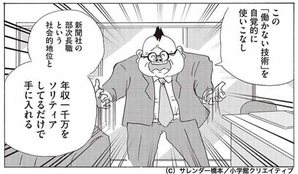 「働かざる者たち」は、新聞社で働きながらギャグマンガ家としても活動する橋田を描くお仕事マンガ。斜陽産業と言われる新聞業界に巣食う、仕事に熱意を持たない“働かない人たち”なりのプライドや嫉妬と、彼らに翻弄されながらも自分の生き方を模索する橋田の姿が綴られる。