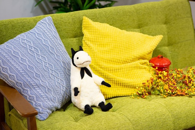 「人外さんの嫁」は、ふわふわした不思議な生き物・カネノギさんと結婚することになった男子高校生・日ノ輪泊を描く4コママンガ。10月よりTVアニメが放送されることを記念したこのアイテムは、原作のフォルムをそのままに29cmのふわふわとしたぬいぐるみに仕上げられた。