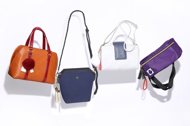 ラインナップされたのは山伏国広、にっかり青江、今剣、岩融をイメージした4種。服装をイメージしたオレンジカラーの山伏国広モデルは、ショルダーバッグとしてもハンドバッグとしても使える2wayタイプで、タッセルとファーチャームが付属する。にっかり青江モデルは個性的なフォルムが目を引くネイビーのショルダーバッグ。ベルトには腰の紐を模した三つ編みがあしらわれている。