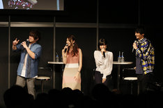 「電撃文庫25周年記念 秋の電撃祭」ステージの様子。左から松岡禎丞、戸松遥、茅野愛衣、島崎信長。