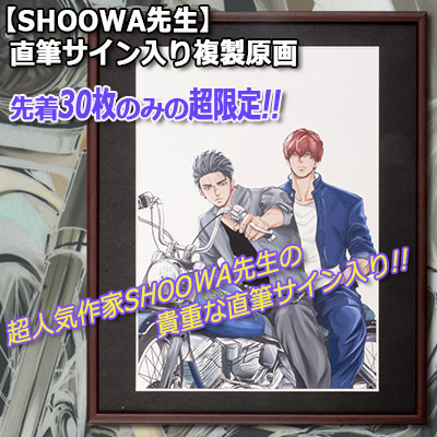SHOOWAのカチCOMI表紙イラストが複製原画に、直筆サイン入りで30名限定販売 2018年10月11日2018年10月11日 editor SHOOWAの複製原画。SHOOWAの複製原画が、秋田書店オンラインストアにて先着30名限定で発売される。 バイクに乗る2人の男のイラストは、アウトロー特化型BLマガジン・カチCOMI(秋田書店)の表紙用に描き下ろされたもの。複製原画にはSHOOWAの直筆サインを入れて届けられる。価格は1万6200円で、販売は10月18日20時から。発送は12月中旬を予定している。 関連記事吉田恵里香が明日放送の「情熱大陸」に出演、世に問い続ける作品づくりに密着愛されヒーローの日常密着コメディ「生活マン」、ジャンプ+で連載スタート「夫を社会的に抹殺する5つの方法」“リブート版”が12月に キャストと世界線を一新「じゃりン子チエ 劇場版」「スペースコブラ」ラグボール編YouTubeで無料配信高屋奈月&横槍メンゴが「幻想水滸伝」シリーズ30周年お祝い、イラスト&コメント公開幾原邦彦による寺山修司の詩集発売、カバーイラストは横槍メンゴ描き下ろし Tweet