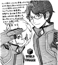「ワールドトリガー」は、近界民(ネイバー)と呼ばれる異世界からの侵略者と戦う組織を描いたSFアクション。2013年より週刊少年ジャンプにて連載されており、2014年にはテレビアニメ化も果たしている。葦原の体調不良により、2016年11月より休載が続いていた。「体に気をつけつつがんばります。よろしくお願いします」という葦原のコメントともに、遊真と修を描いたイラストも公開されている。