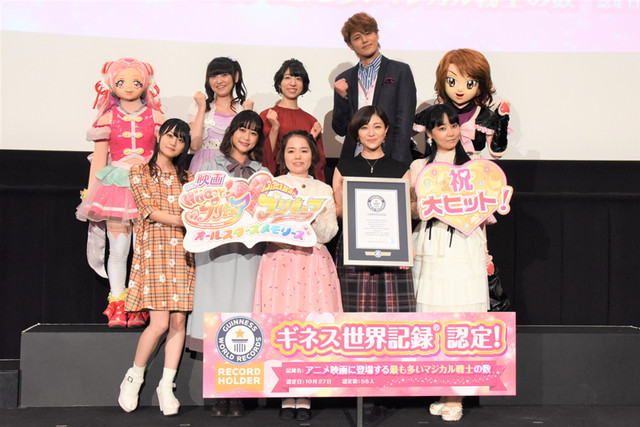 そして舞台挨拶後半で、本作が「アニメ映画に登場する最も多いマジカル戦士の数(Most magical warriors in an anime film)」としてギネス世界記録に申請されていたことが司会者の口から明かされる。東映アニメーション社長の高木勝裕も登場し、ギネス世界記録認定員の石川佳織氏より見事認定されたことが発表されると、会場は大きな拍手で包まれた。認定証を受け取った高木社長は「東映アニメーションとして初の快挙です。15年間『プリキュア』を続けてこられたのは、支えてくれたファンの皆さんのお陰です」と感謝を述べた。