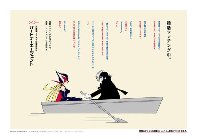 これは、婚活支援サービス「パートナーエージェント」のイメージキャラクターに就任した2人によるコラボレーション企画。「想像を超える出会い」というブランドコンセプトをもとに、ドロンジョとブラック・ジャックによる婚活エピソードが展開されてきた。