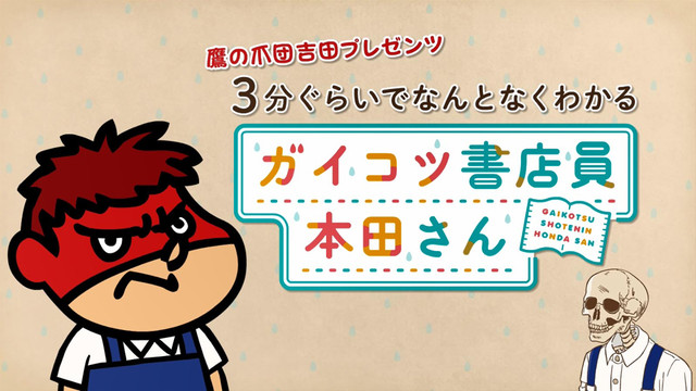 動画では斉藤壮馬演じる本田が働くとある書店のコミック売り場に、「秘密結社 鷹の爪」から鷹の爪団が登場。「ガイコツ書店員 本田さん」について独自の解釈を交えて紹介する吉田くんと、タジタジながらツッコミに追われる本田さんの様子が収められる。