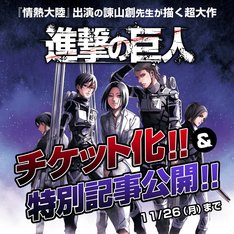 「進撃の巨人」の諌山創が、11月18日に放送されるTBS系のドキュメンタリー番組「情熱大陸」に出演することを記念した特別企画が、マガジンポケットにて11月26日まで実施されている。