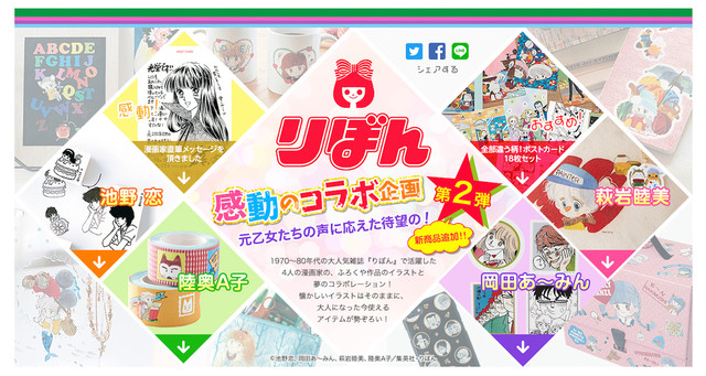 これは8月にリリースした第1弾アイテムの好評を受けて登場したもの。前回に続いて1970年代半ば~1980年代に活躍した陸奥A子萩岩睦美池野恋、岡田あ~みんといった作家4名の作品をモチーフとし、第1弾で使用していないイラストも多数使用されている。