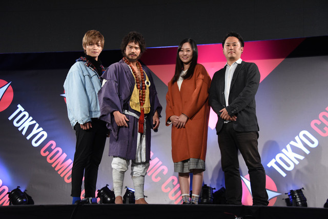風太郎役は市原隼人が担当。このほか藤田富、工藤綾乃も出演し、監督は柴田啓佑が務める。本日のステージには市原、藤田、工藤、柴田監督の4人が登壇した。撮影現場から袈裟の衣装のまま登場した市原は、役作りについて般若心経を覚えるところから始めたと明かす。撮影時の苦労について「食事のシーンでひげを食べちゃうんです。このままアクションをするので、下駄がボロボロになって……」と説明する。さらに見どころについて「山で幼い頃から修行してきた風太郎が街に出ます。街の生活を知らない風太郎がどんなリアクションをするかも面白いです」と語った。
