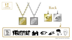 本日12月24日はワイルドタイガーとバーナビー・ブルックスJr.のバディ再結成記念日。これに合わせ、シルバーとK18イエロー・ホワイトゴールドの2種類がコラボネックレスが用意された。表面にはシュテルンビルトのマップをデザイン。裏面にはワイルドタイガーやバーナビー・ブルックスJr.のロゴマーク、ヒーローたちのシルエットなど46種類のマークから好みのものを選んで刻印できるセミオーダー制となっている。