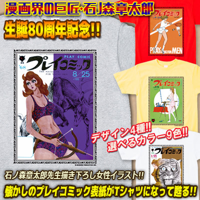 石ノ森章太郎が描いた、プレイコミック表紙の女性イラスト4種がTシャツに
