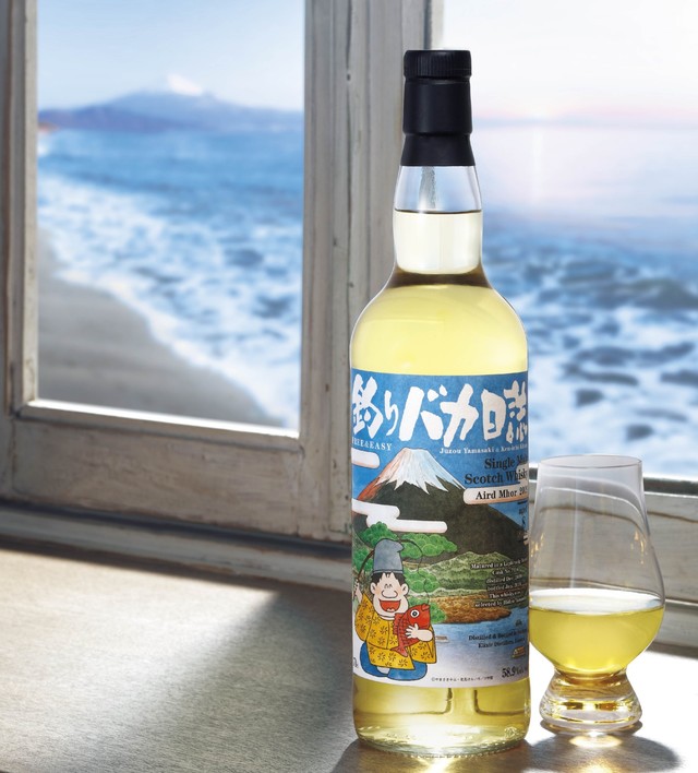 単行本の巻数が100巻を突破し、今年連載40周年を迎える「釣りバカ日誌」。ラベルはウイスキーコレクターの山岡秀雄がセレクトしたスコットランド原産のシングルモルト「Aird Mhor 2009」に貼られ、富士山をバックに恵比寿姿のハマちゃんが鯛を釣り上げる姿が描かれている。価格は税込み1万4040円。