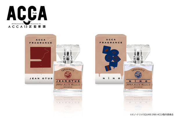 オノ・ナツメ原作によるテレビアニメ「ACCA13区監察課」の登場人物である、ジーン・オータスとニーノをイメージしたフレグランスが、7月14日より東京・primaniacs銀座本店と原宿店にて販売される。価格は各5850円。