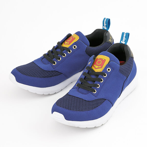 「HAPPY PARTY TRAIN」をモデルにしたブルー地のスニーカーは、シュータンに衣装とおそろいのワッペンをデザイン。かかとやインソールには、キャラクターを表現するモチーフがあしらわれている。また長財布は「未来の僕らは知ってるよ」をイメージしたマリンテイストで、ファスナーの引き手はアニメ本編に登場する羽根の形に。ポーチは「恋になりたいAQUARIUM」、スマートフォンケースは「想いよひとつになれ」をモチーフとし、それぞれメンバーカラーを用いた全9種が展開された。