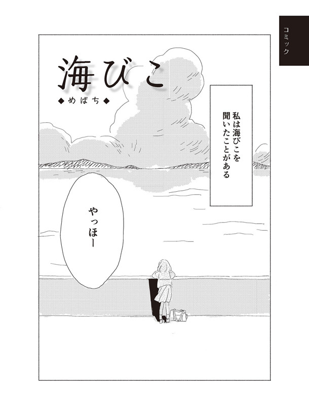「スタァライト」ED絵を担当しためばちが、ミステリマガジンに読み切りを執筆 2019年1月25日2019年1月25日 editor 「海びこ」の扉ページ。めばちによる読み切りマンガ「海びこ」が、本日1月25日発売のミステリマガジン3月号(早川書房)に掲載されている。 「海びこ」は6ページのショート作品。少女が海に向かって「やっほー」と叫ぶと、山びこのように返事が返ってくる不思議な現象に遭遇したことから始まる物語になっている。作者・めばちは、アニメ「少女☆歌劇レヴュースタァライト」のエンディングイラスト、「三ツ星カラーズ」の衣装デザインなどを手がけたイラストレーターで、マンガを商業誌で執筆するのは今作が初。 関連記事「グノーシア」新EDで全員“グノ顔”に、梅田サイファーの新曲流れる映像公開ドラマ「死ぬまでバズってろ!!」新たな予告公開、ED主題歌はあみゅりアニメ「異世界の沙汰は社畜次第」追加キャストにED歌う森崎ウィン、ビジュアルも公開「ゲゲゲの鬼太郎」新EDは山内惠介「闇にご用心」、椎名林檎がプロデュース「劇場版遠井さん」に豊崎愛生、内田雄馬、佐倉綾音、岡本信彦ら EDはすとぷりが担当「劇場版総集編 呪術廻戦」新たな入場者プレゼントにEDイラストのステッカー Tweet
