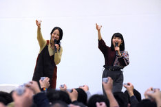 作中に登場するお酒好きの先生・グビ姉こと鳥羽美波が発したセリフにインスパイアされ、太冠酒造によって製造された日本酒「グビ姉のすき焼きに合う日本酒」。そのヒットを記念して行われた「グビ姉の利き酒会」には、グビ姉を演じ、自身も酒豪として知られる伊藤静、志摩リン役の東山奈央という2人のキャストが登場。会場横に作られた試飲コーナーで5種類の日本酒を楽しみほろ酔いムード漂うファンを前に、自身らもお猪口に口を付けながらトークを行った。