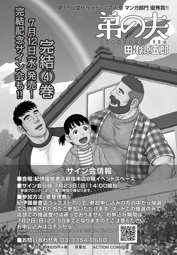 田亀源五郎「弟の夫」最終4巻が7月12日に発売されることを記念し、7月23日に東京・紀伊國屋書店新宿本店にて田亀がサイン会を行う。