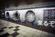 「JUMP HERO’S WALL」は「-ジャンプヒーローたちが現実の世界で戦ったら-」をテーマに、彼らが繰り出す必殺技の痕跡を再現したコンクリート壁風のグラフィック。ルフィの「ゴムゴムの火拳銃」、悟空の「かめはめ波」、ナルトの「螺旋丸」による大穴など、バトルの激しさや必殺技の圧倒的な威力が全長約15メートルの壁で表現される。