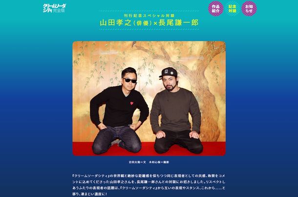 長尾謙一郎「クリームソーダシティ 完全版」の刊行を記念した特設サイトが、本日6月14日にオープン。サイト内では長尾と俳優の山田孝之による対談が公開されている。