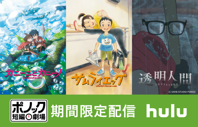 2018年8月に劇場公開された本作は、“現代のちいさな英雄”を3人の監督が描くオムニバス作品。Huluでは3つの短編で構成された本作から毎月1本を順次配信する。各作品の配信は、米林宏昌監督によるカニの兄弟の冒険ファンタジー「カニーニとカニーノ」が本日2月24日、百瀬義行監督が手がける卵アレルギーの少年と母の物語「サムライエッグ」が3月24日、山下明彦監督が手がけた“見えない男”の孤独な戦いを描いたスペクタクルアクション「透明人間」が4月13日にスタート。
