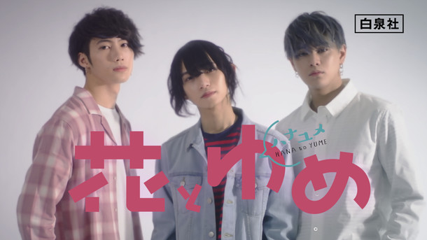 CMにはXOXのとまん、志村禎雄、バトシンが登場。通称“だおばとまん”と呼ばれる3人によるコメントも到着した。とまんは「初のCM出演ということでとても嬉しかったです! 僕も大好きな少女漫画たちがたくさん! 僕らにも花ゆめにもたくさんキュンキュンしてください!」と期待をあおった。CMは4月11日スタートのアニメ「覆面系ノイズ」内にてオンエアされる。